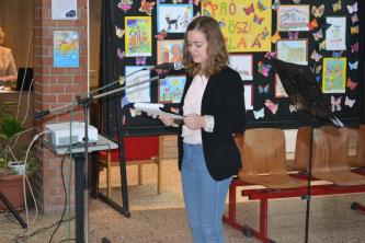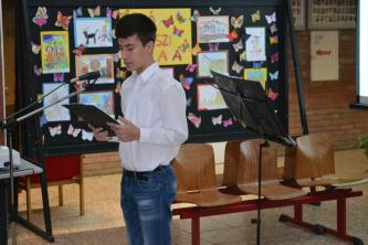 A 9.B osztályos tanulók emlékeztek ünnepi műsorral Győri Éva tanárnő felkészítésében.
