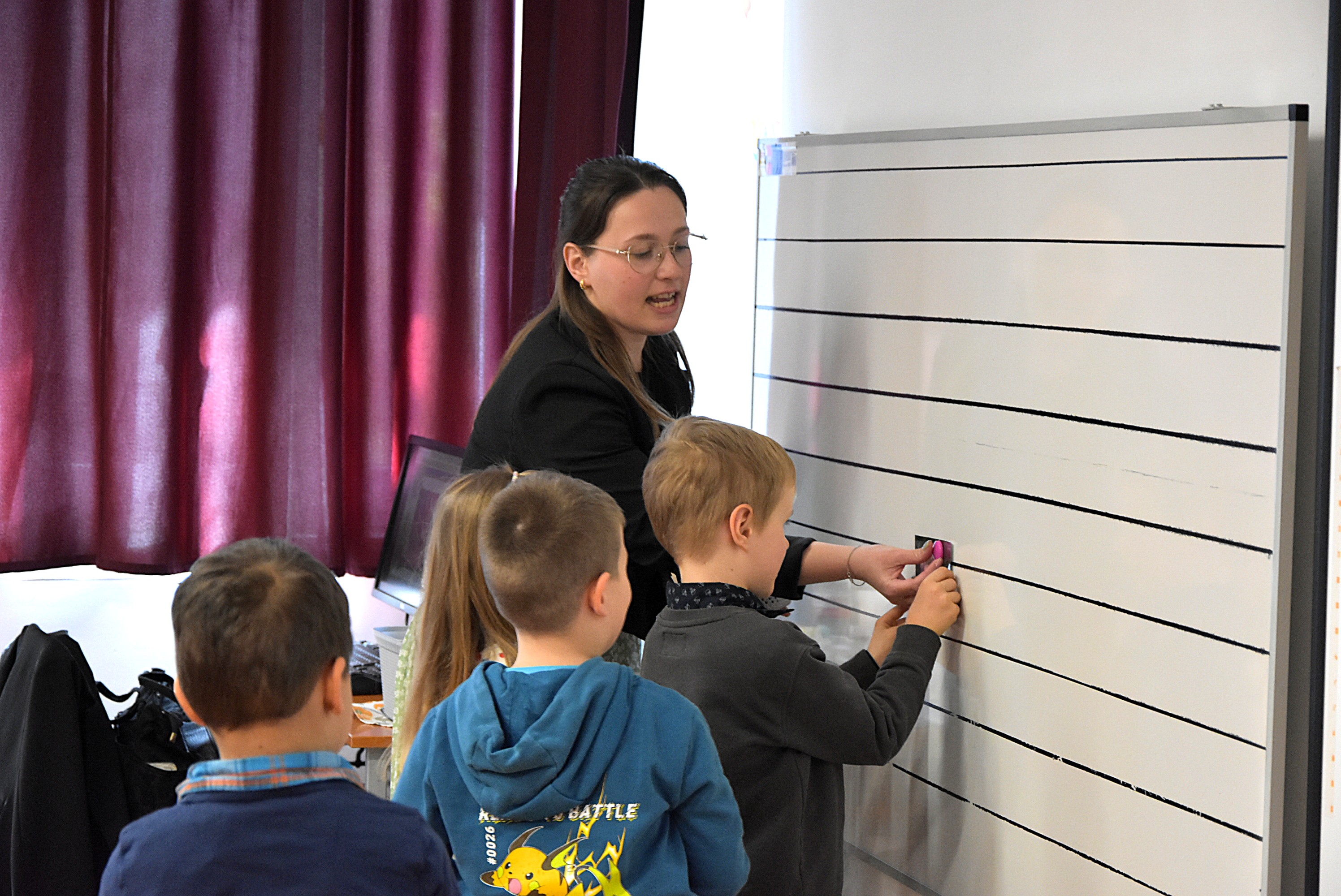 A 4.c osztály egy izgalmas zseblámpás játékkal indította a foglalkozást. A sötétbe borult terem különleges hangulatot teremtett, mely segített ráirányítani a figyelmet a fókusz jelentőségére. A beszélgetés során a gyerekek megértették, hogy a tudatos figyelem segít észrevenni a nap apró örömeit. Egy mesét is meghallgattak, mely az élet kis csodáiról szólt, majd elkészítették saját „örömvirágukat”. Minden sziromra egy-egy boldogító élmény került, így vált láthatóvá, mennyi apró szépség teszi szebbé a mindennapokat.