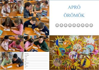 A 4.a osztály játékos feladatokon és beszélgetéseken keresztül tapasztalta meg, mennyi érték rejlik a nap apró mozzanataiban. A foglalkozás elején mindenki megosztott egy friss élményt, mely jó érzéssel töltötte el. A gyerekek hamar rájöttek, milyen sokat jelentenek ezek a sokszor észrevétlen, mégis meghatározó pillanatok. Párokban „örömvadászokká” alakultak: különböző helyszínekhez kerestek pozitív élményeket, majd bemutatták egymásnak felfedezéseiket. A kreatív részben elkészült az „Apró örömeim napocskája”, melynek közepére a legfontosabb élmény került, a sugarakra pedig további kedves momentumok. A záró mozgásos játékban mozdulatokkal fejezték ki, milyen érzéseket keltenek bennük ezek a kis csodák. A jókedv és a sok mosoly ismét bebizonyította: a boldogság ott van körülöttünk, csak észre kell venni.