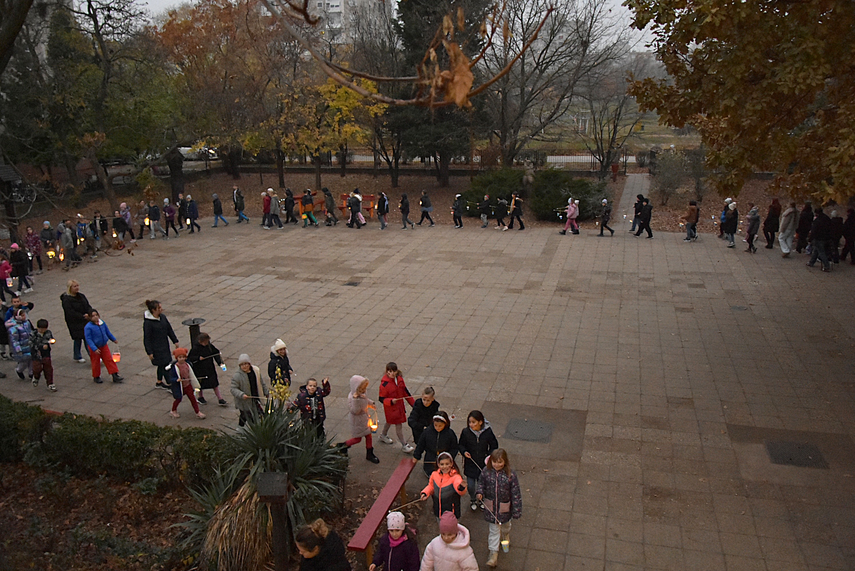 Az ajándékok kiosztása után lassan kialudtak a fények iskolánk főépületében, felcsendült a Herbsttag kedves, már hagyományosnak számító német dala, a „die Lichterkinder”, és elindult a lámpás felvonulás 90 diák és az őt kísérő pedagógusok részvételével.