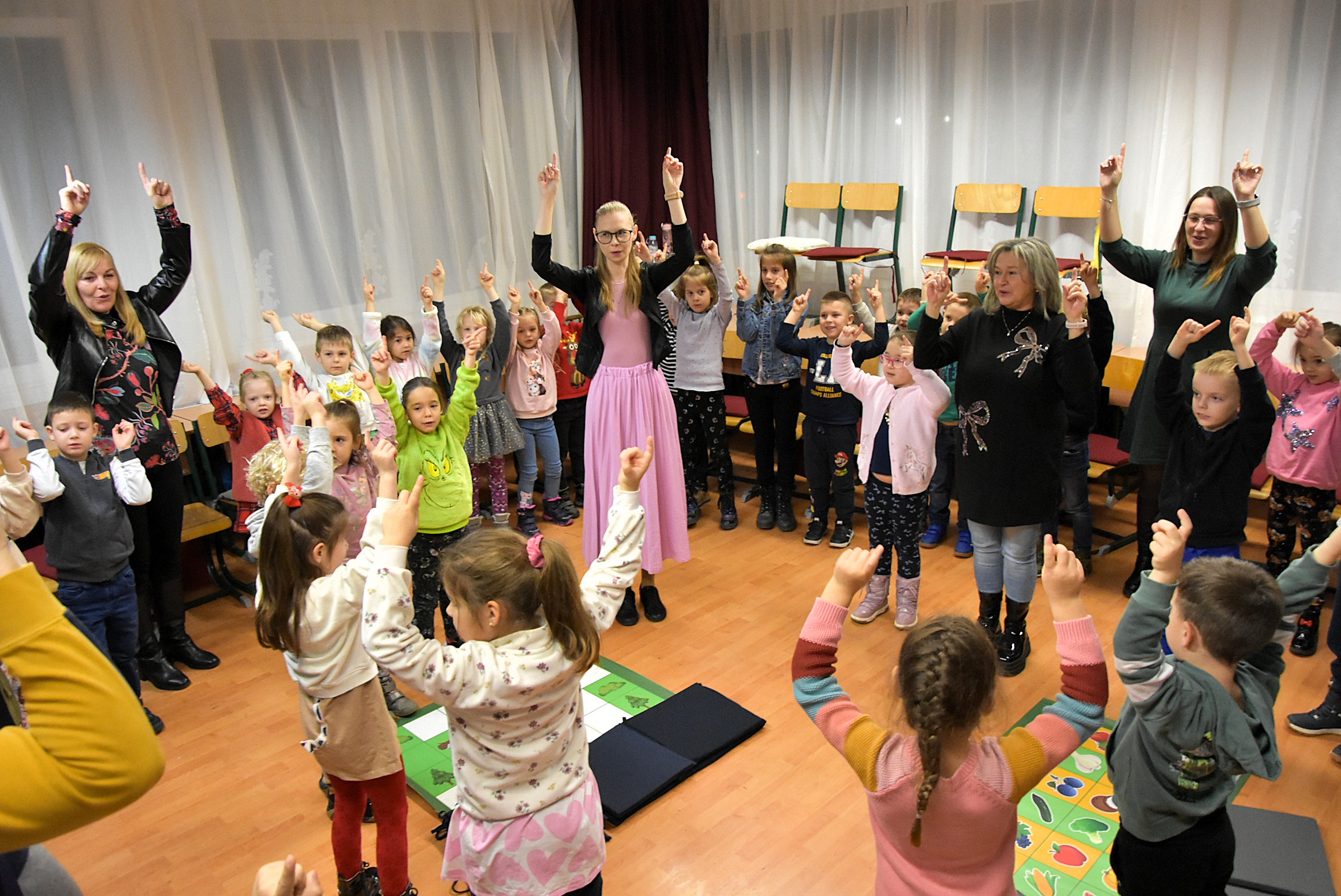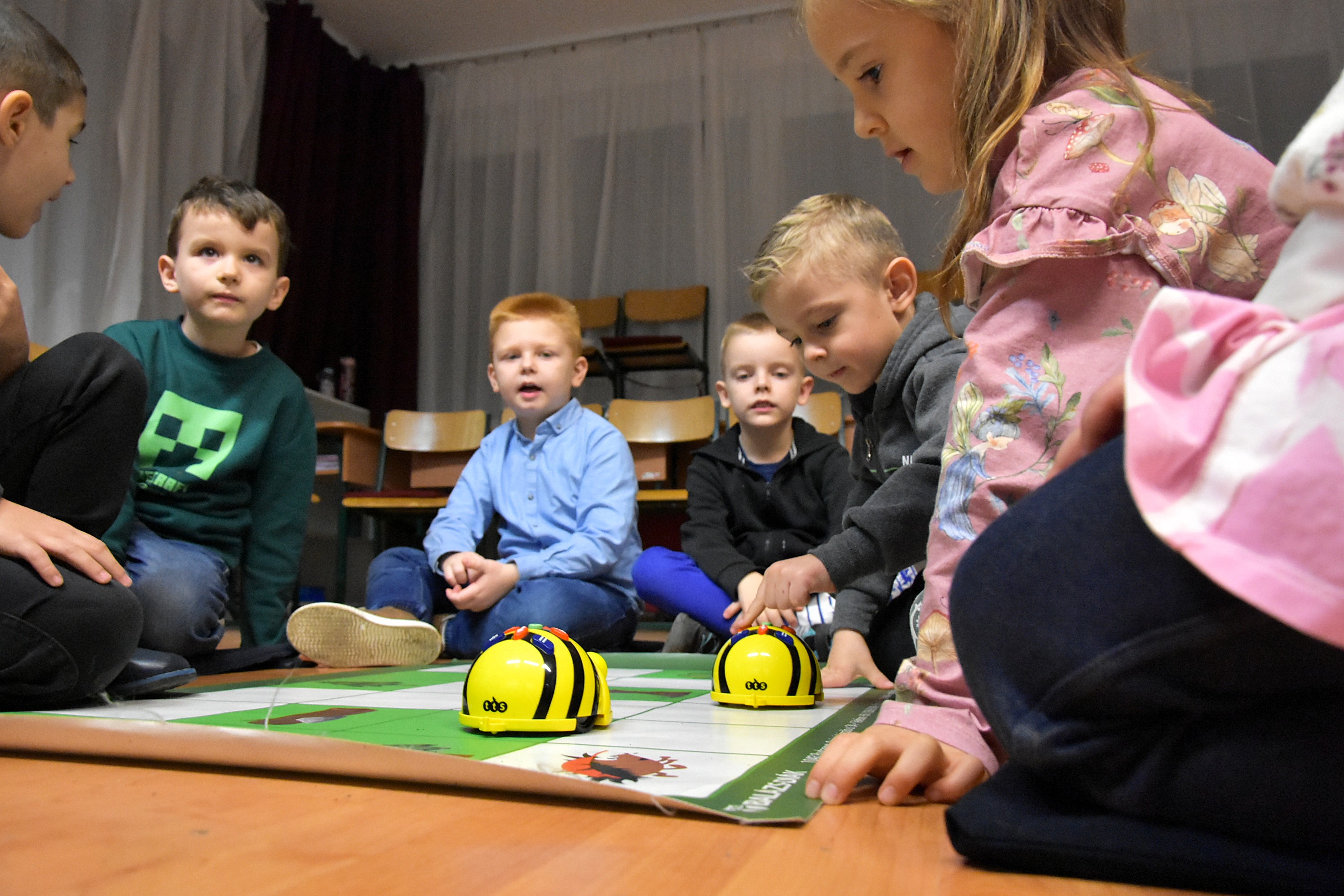 Amíg a felnőttek az előadáson vettek részt, a gyermekek játékos formában ismerkedhettek a tanító nénikkel: énekeltek, játszottak, kipróbálták a robotikát, részt vettek Bee-Bot kalandokban és interaktív feladatokban. A kézműves foglalkozásokon színeztek, építettek legóból és építőkockából, majd ügyességi pályán is próbára tehették magukat.