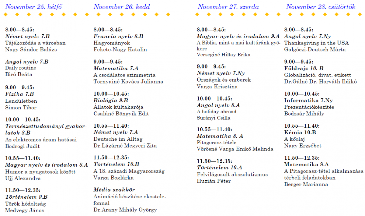 2021.11.17. Nyitott Iskola hete tanórái