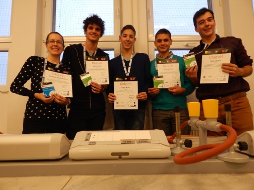 A csapat tagjai: Baranyi Máté, Gábor Viktor, Papp Ádám, Szeles Dávid 12.a osztályos tanulók