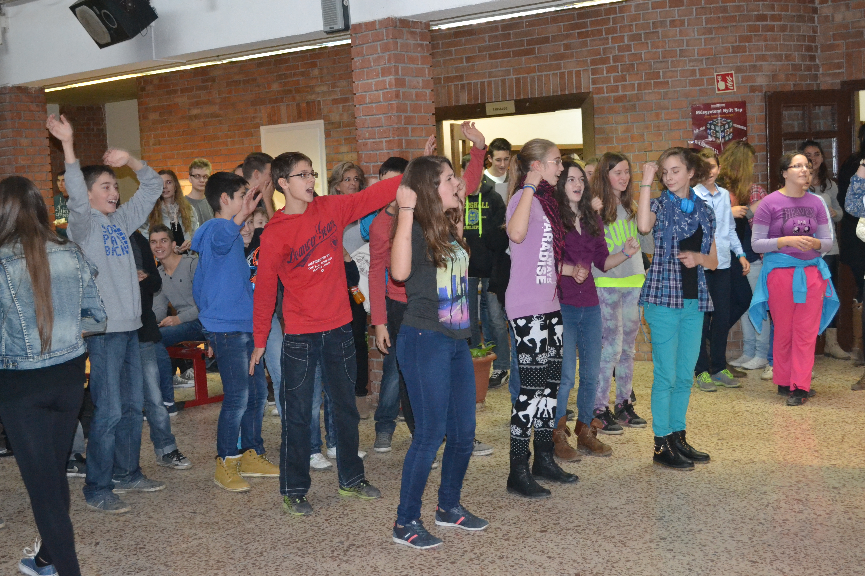 Múlt pénteken, azaz december 5.-én került sor idén a gólyák avatására. A 7.Ny és a 7.b osztály küzdött meg egymással. A 11.c osztály által összeállított feladatokat nagy lelkesedéssel csinálták, vidáman telt a délután. Az előzetes feladatokat, a csapatindulót is nagyon szellemesen fogalmazták meg, így ettől harsogott az aula. Külön köszönet a két osztályfőnöknek, akik komolyan véve a kihívást, nagyon aktív szerepet játszottak az osztályuk „anyukájaként”!