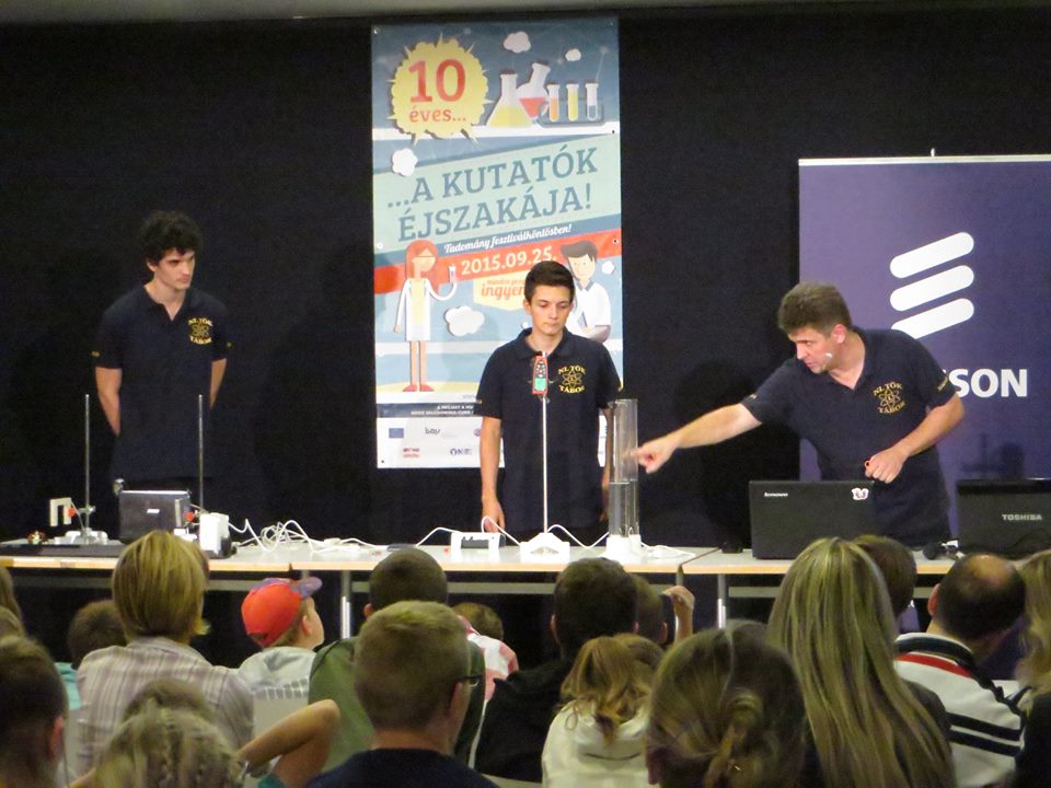 A "Kutatók Éjszakája 2015 - Öveges Tanár Úr utódai" című programban két diákunk, Gábor Viktor (13.a) és Sinka Balázs (12.b) segítségével 30 perces kísérleti bemutatót mutattak be az érdeklődőknek Sebesség-mánia! címmel.