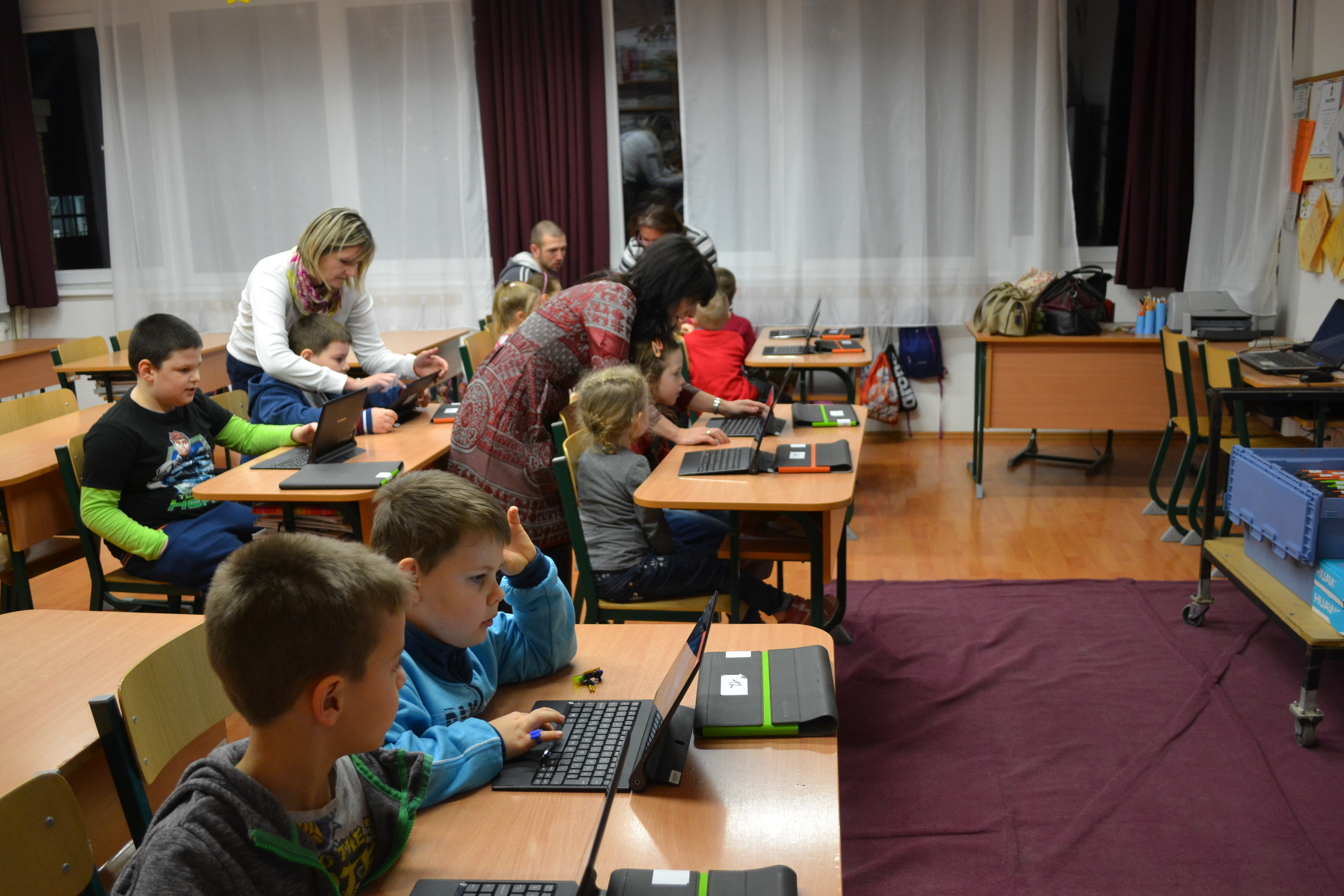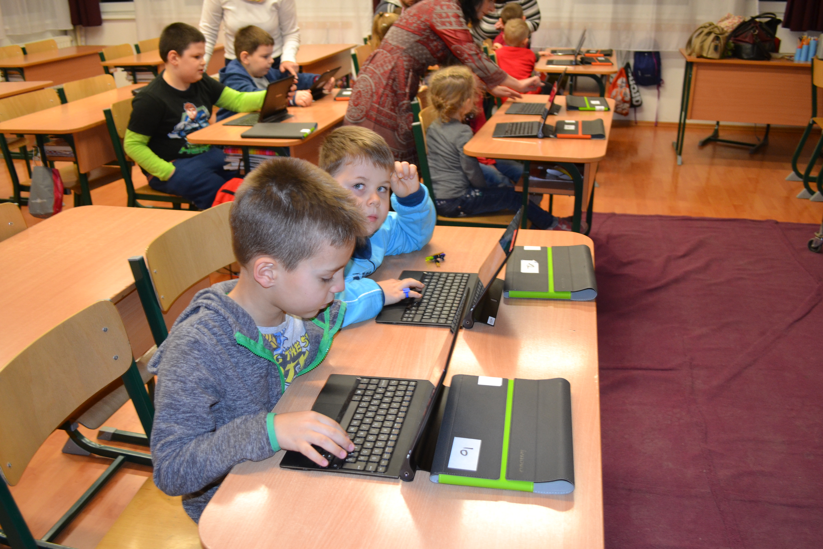 A szülőkkel való beszélgetés mellett a leendő elsősök kézműves foglalkozáson rénszarvas nyakláncot, angyalkákat és hóembereket készíthettek, vidám dalokat tanultak. Kipróbálhatták a számítógépes oktató játékokat tableteken, interaktív táblákon is.