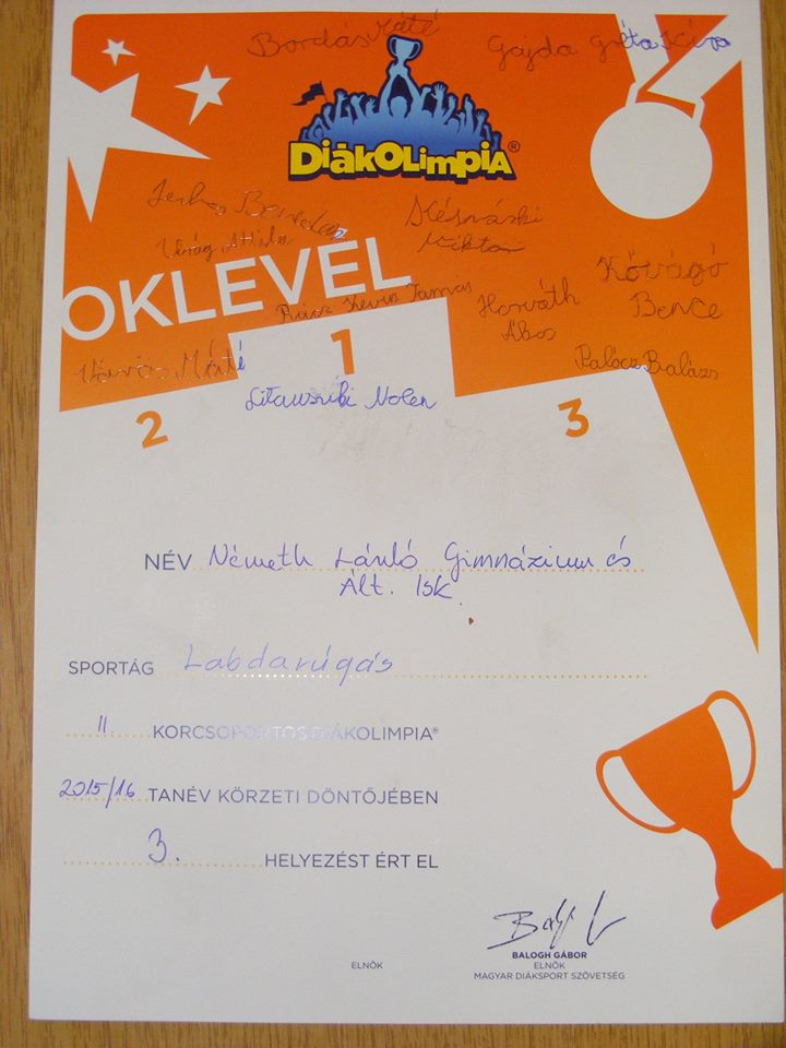 A mai napon került megrendezésre az ötpróba diákolimpia, ahol iskolánk lány csapata szoros versenyben a 3. helyen végzett.