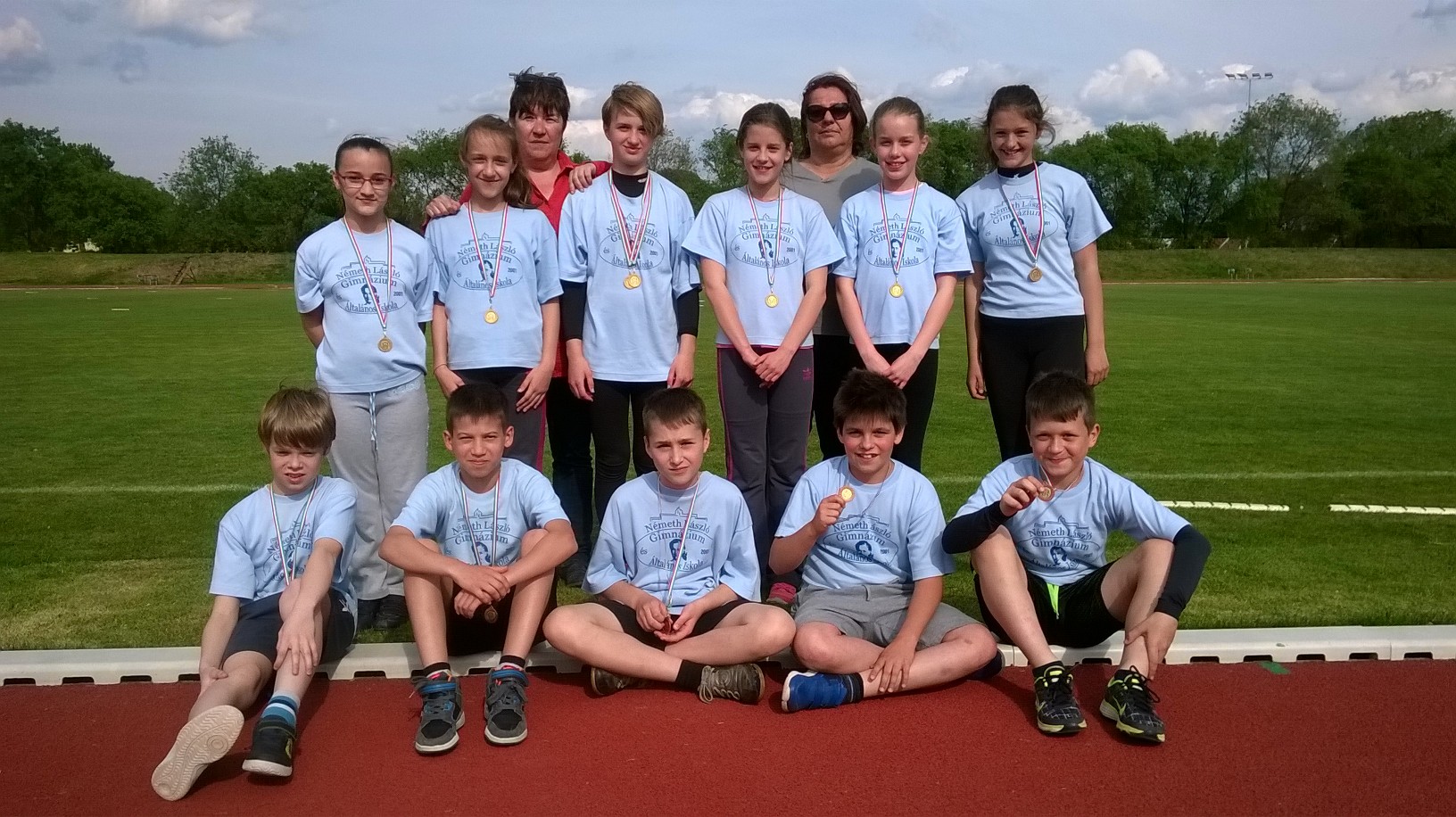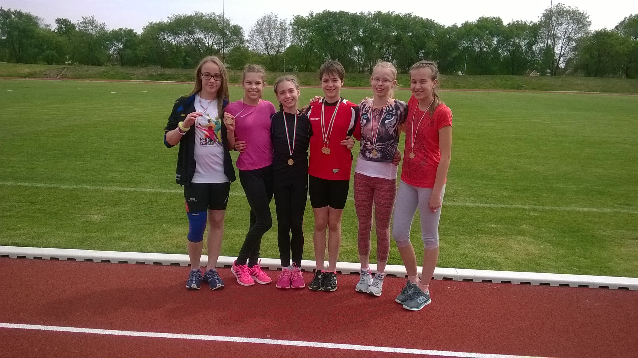 A mai napon a Bugnó Gréta, Nagy Laura, Szkalonai Fanni, Szenti Noémi, Czifra Lili, Wolf Eszter összeállítású 3. korcsoportos atlétikai csapatunk a városi bajnokságot megnyerve, bejutott a megyei döntőbe.