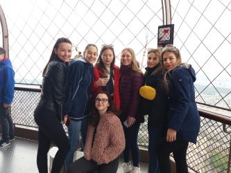 A buszút első részében a résztvevők többsége a korán kelés okozta fáradalmakat igyekezett kipihenni, később viszont egyre elevenebb lett a társaság. Zenével, filmnézéssel, beszélgetéssel, és sok nevetéssel próbáltuk elütni az időt. Reggel szintén korán kezdtük a napot, a reimsi katedrális megtekintése után Párizs felé vettük az irányt. A délutáni órákban hatalmas örömujjongás közepette megpillantottuk Párizs, vagy talán egész Franciaország leghíresebb látványosságát, az Eiffel-tornyot. Mindannyiunkat lenyűgözött a hatalmas építmény, ami sokkal elképesztőbb, mint a képeken. Hosszú sorban állás és jó pár méter liftezés után a torony tetejére is feljutottunk, ahonnan lélegzetelállító látképet kaptunk a városról. Ezután elfoglaltuk a szállásunkat a Pommeus-i kempingben, amit nagyon hangulatosnak találtuk, hiszen önállóan kellett gondoskodnunk magunkról: a vacsoráról és a ház rendbentartásáról. Másnap korai indulás után érkeztünk a világ egyik leghíresebb múzeumába, a Louvre-ba. 3 órát töltöttünk a szebbnél szebb festmények és szobrok nézegetésével, úgyhogy csak egy parányi részét tudtuk megtekinteni a hatalmas múzeumnak. Azután a Diadalívhez vezetett utunk, illetve a híres sétáló utcán, a Champs Élysées-n lévő üzletek nézegetésével töltöttük az időt. Néhányan elsétáltunk egészen a Concorde térig, illetve a Szajna-partig. Ezek után a Sacré Coeur bazilikát, illetve az előtte található Festők terét látogattuk meg, ahol rengeteg művész árulta szebbnél szebb festményeit. Miután megtekintettük a bazilika belsejét, lehetőséget kaptunk, hogy szuveníreket vásároljunk a minket hazaváróknak, vagy éppen csak nézelődjünk a környéken. A következő napon Versaillesba utaztunk, ahol szintén kígyózó sorokban állva várakoztunk, hogy bejuthassunk a kastélyba. Odabent olyan látvány fogadott bennünket, hogy csak ámultunk és bámultunk. A gyönyörű, aranyozott festmények és díszítés elsőre talán túl soknak, csicsásnak hathat, azonban a kastélyba tökéletesen beleillet ez a pompa. Következő megállónk az Invalidusok dómja volt, ahol megtekinthettük Napóleon sírját. A dóm után a Notre Dame-hoz vezetett az utunk. Nagyon szerencsésnek érezzük magunkat, hogy mi még a katasztrófa előtt, teljes és eredeti valójában láthattuk Párizs egyik leglátogatottabb műemlékét. Másnap reggeli első állomásunk egy parfümmúzeum volt, a Fragonard. Röviden megismerkedhettünk a parfüm elkészítésének folyamatával, utána pedig vásárolhattunk a márka termékeiből. Kirándulásunk megkoronázásaképpen gyönyörű napsütésben tehettünk egy hajóutat a Szajnán, ahonnan újra láthattuk a főváros főbb látnivalóját. Ezután a tranzitszállásunk volt a következő úticélunk, ekkor értesültünk a Notre Dame tetején keletkezett tűzről. Mindannyiunkat elgondolkodtatott a baleset, hogy milyen szerencsések is voltunk, hiszen pont egy nappal a tűz előtt láthattuk utoljára a híres székesegyházat. Ezután már csak a hosszas hazabuszozás várt ránk, amit szintén filmezéssel, alvással, illetve játékos kvízzel próbáltunk átvészelni. Kirándulásunk folyamán nem mindig ment minden a tervek szerint, de még így is egy életre szóló élményben volt részünk, amiért hálásak vagyunk tanárainknak, valamint, hogy a szervezés okozta stresszt a hátukra véve igyekeztek mindig a lehető legjobbat kihozni a körülményekből. Nagyon jól éreztük magunkat ebben a pár napban, felejthetetlen élményt kaptunk.