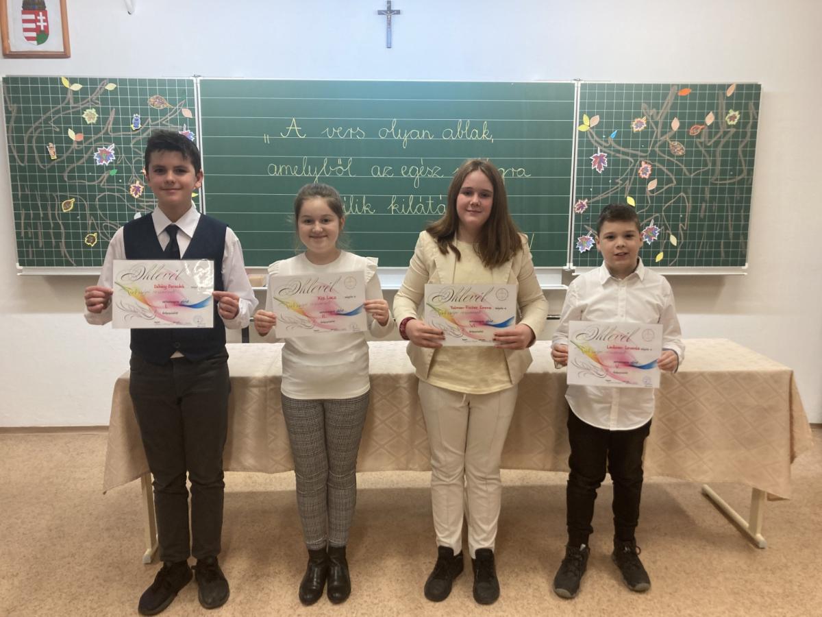 2023. november 23-án rendezték meg a Szent József Kertvárosi Katolikus Általános Iskolában a kistérségi szavaló versenyt, ahol diákjaink nagyon sikeresen szerepeltek. A következő eredményeket érték el: